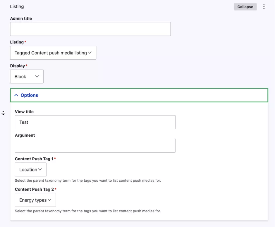 Select “Tagged content push media listing” from the Listing dropdown.