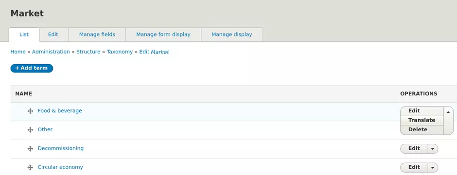 Chose the translation you want to add / edit and click on the Edit button.
