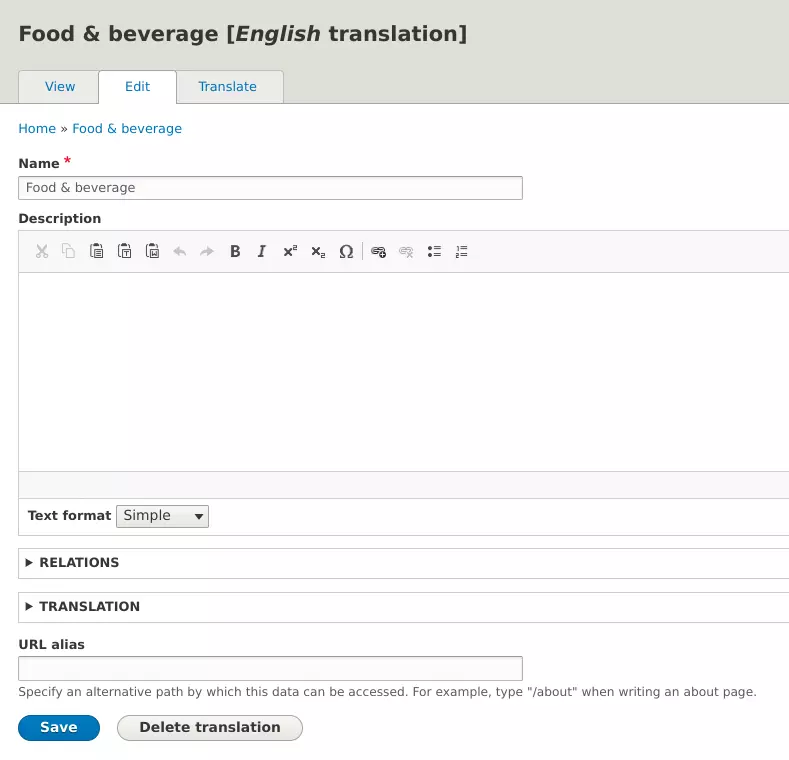 4. Then add a translation. Once it is done, don't forget to click on Save.