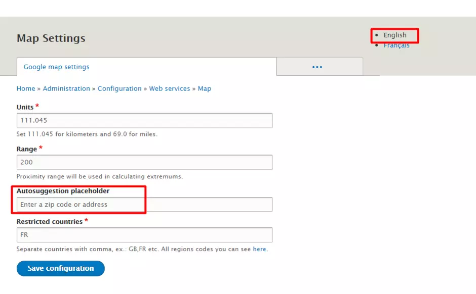 1. Go to Configuration – Web service – Maps – Google Map settings